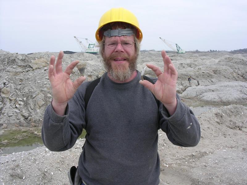 Holding a fossilized squalodon canine and a 2 1/2" mako I found at the world reknown PCS phosphate mine in Aurora NC